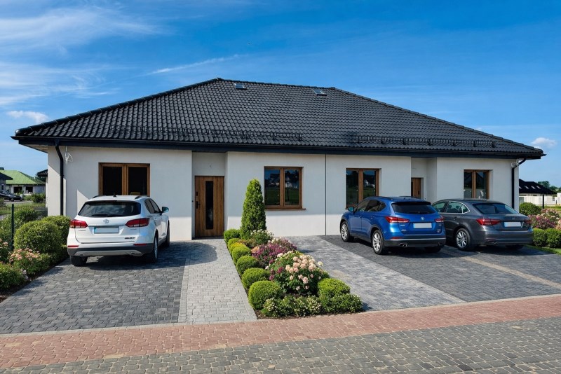 10. Podejścia wewnętrzne i podjazdy - kostka brukowa betonowa, opaska wokół domu z kostki brukowej betonowej